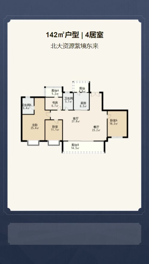 售完高层翎境标准层户型 | 建面:142㎡ | 朝向:南北