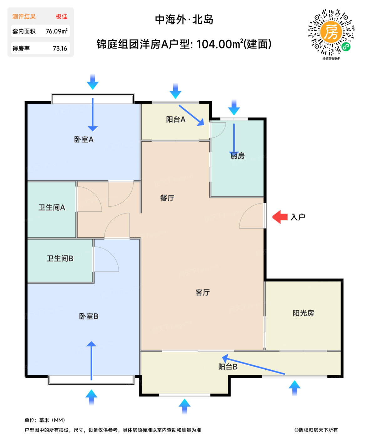 在售锦庭组团洋房A户型 | 建面:104㎡ | 朝向: