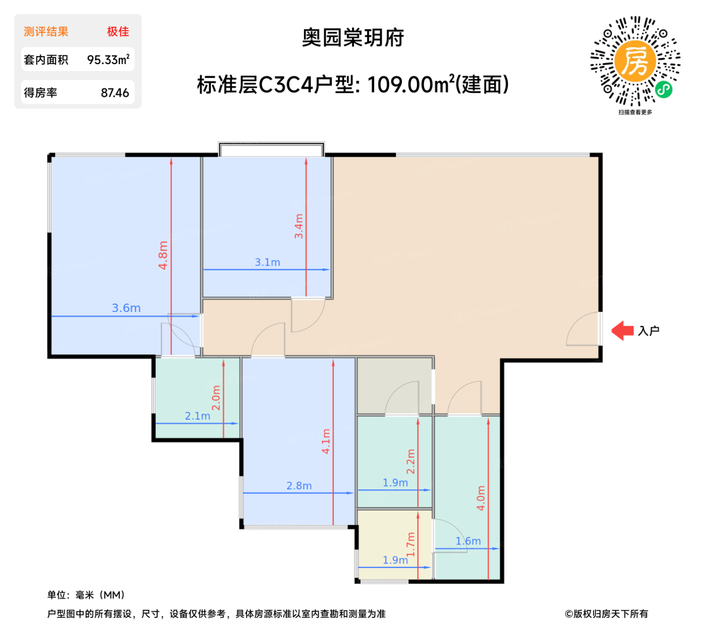 | 卧室C | 11.2 | 2.8 | 4.1 | 良好 |