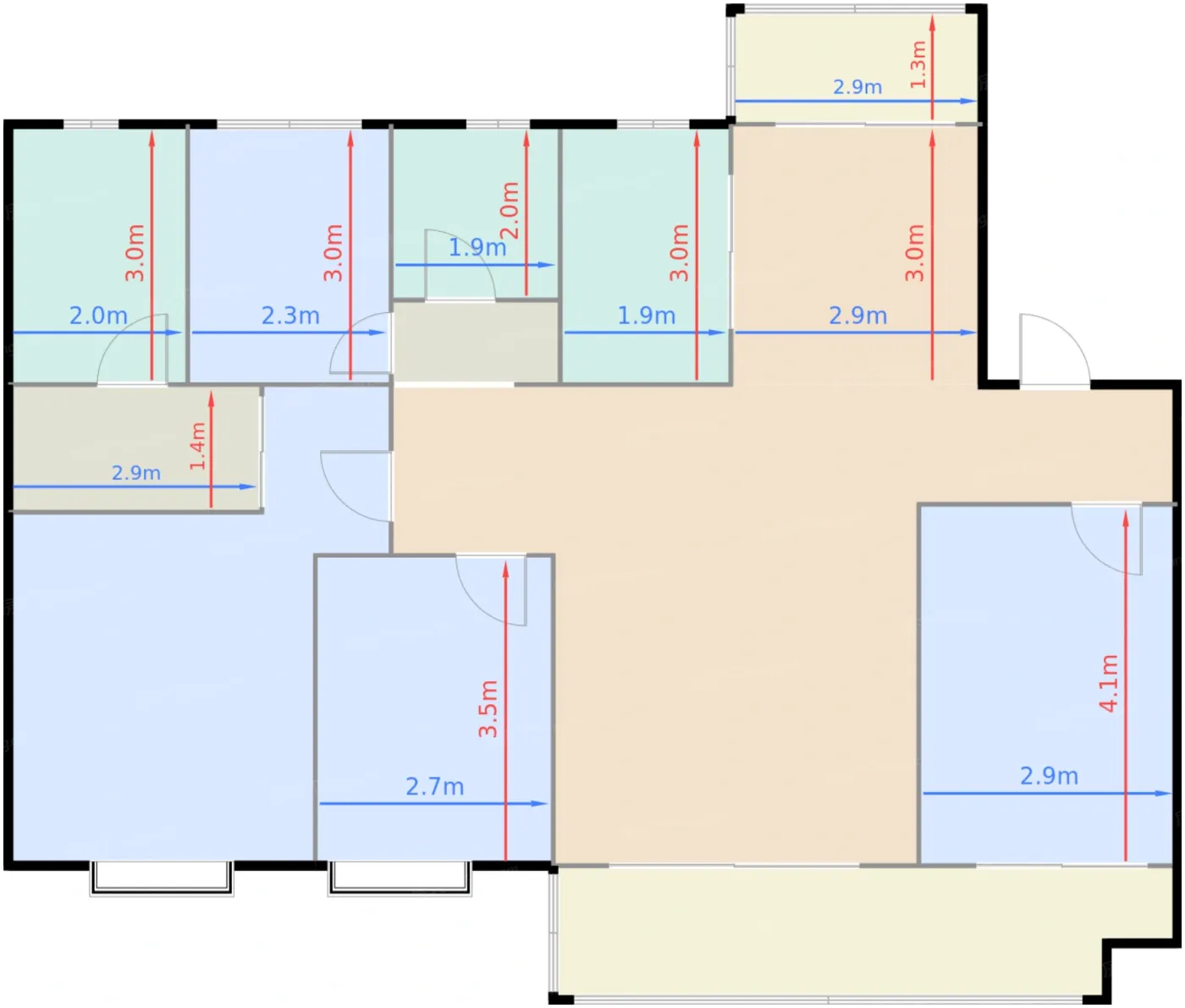 | 阳台 | 3.7 | 2.9 | 1.3 | 良好 |