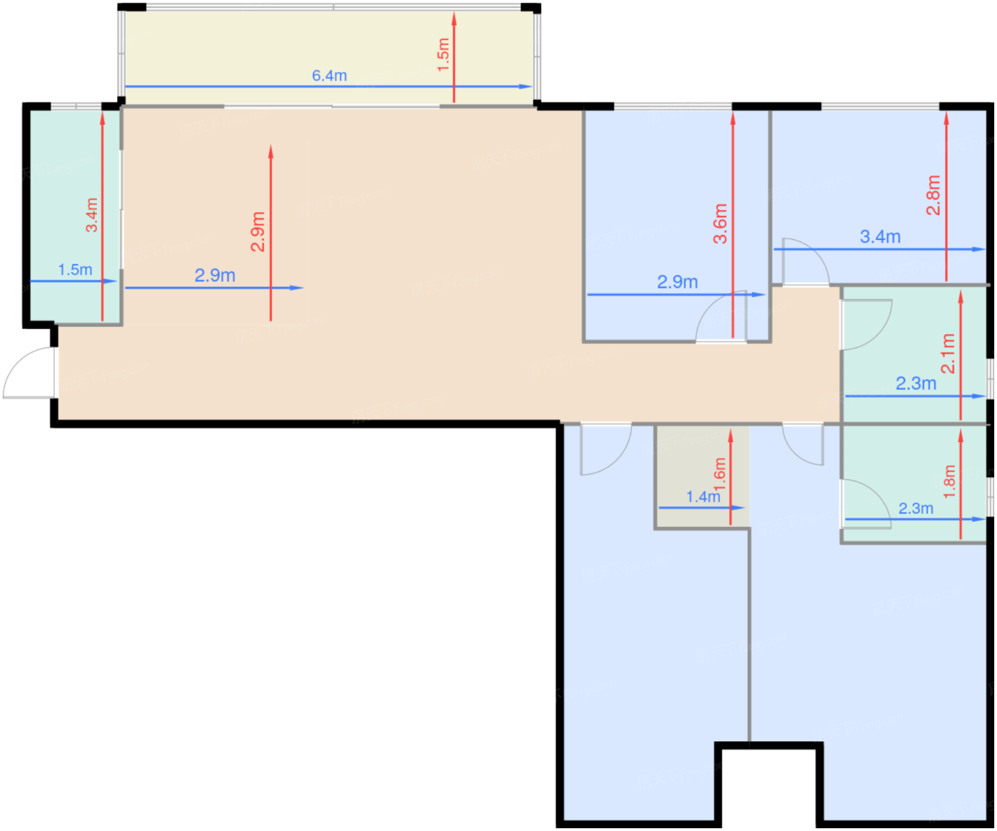 | 卧室C | 9.4 | 3.4 | 2.8 | 良好 |