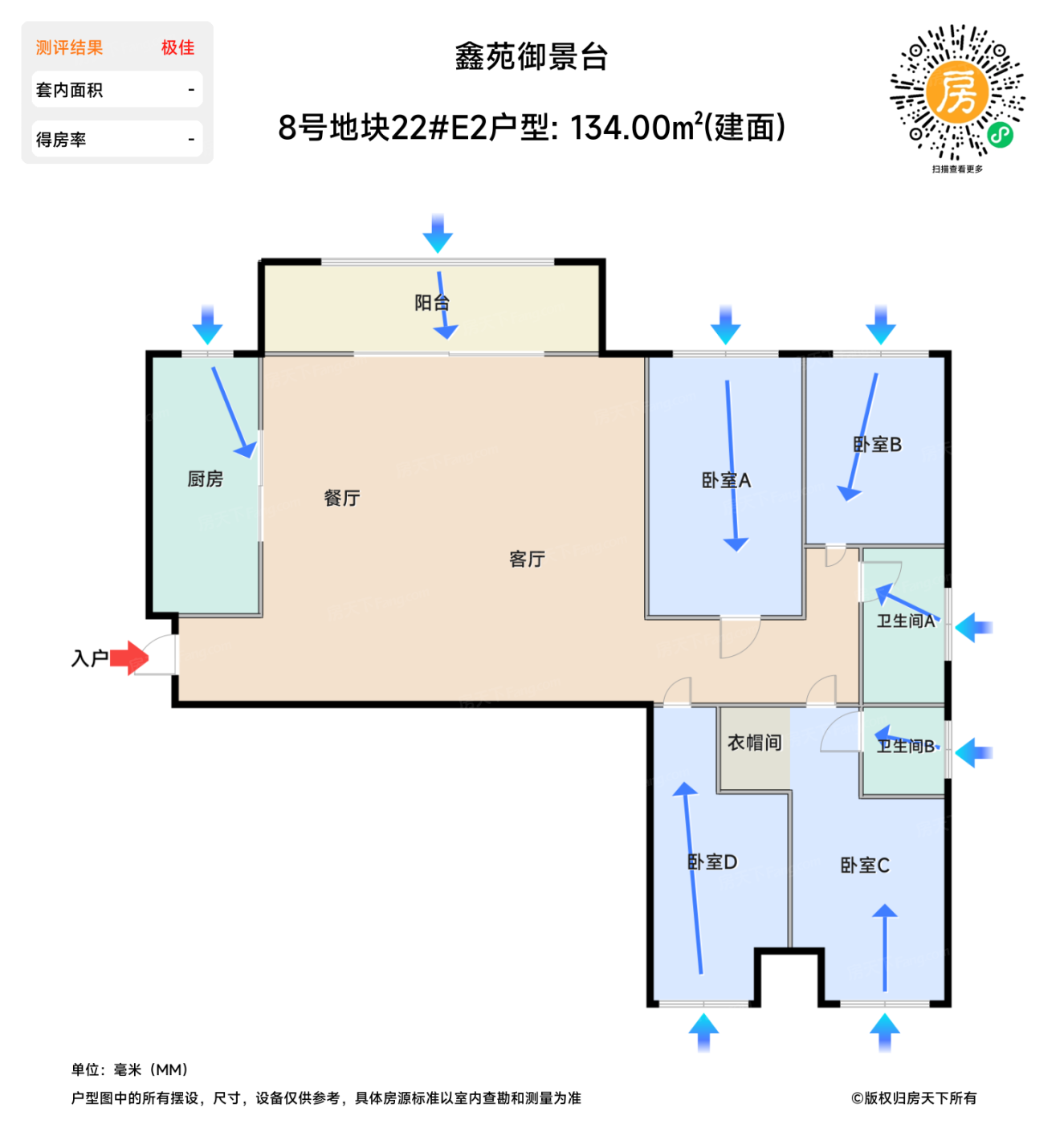在售8号地块22#E2户型 | 建面:134㎡ | 朝向: