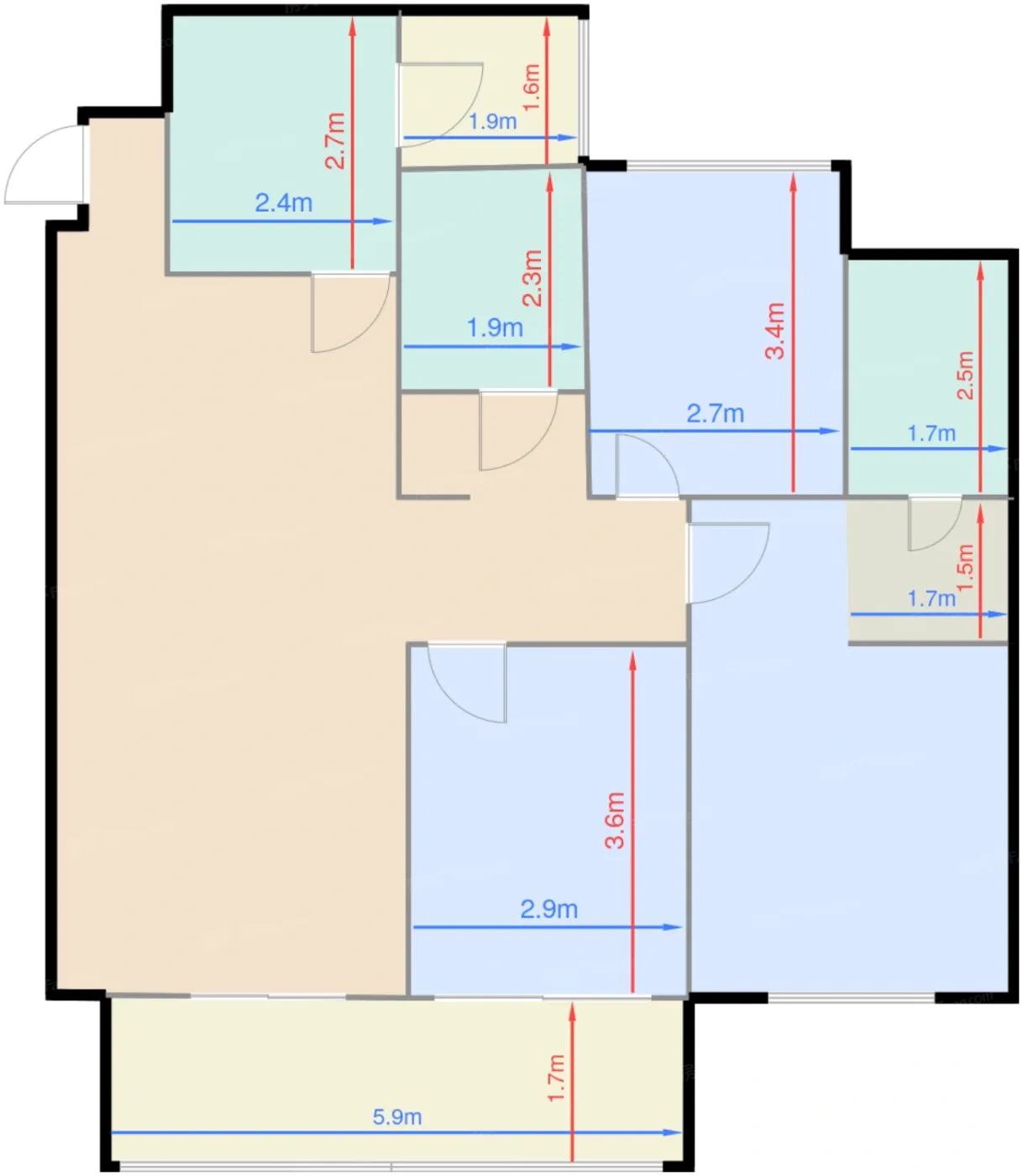 | 阳台B | 10.2 | 5.9 | 1.7 | 良好 |