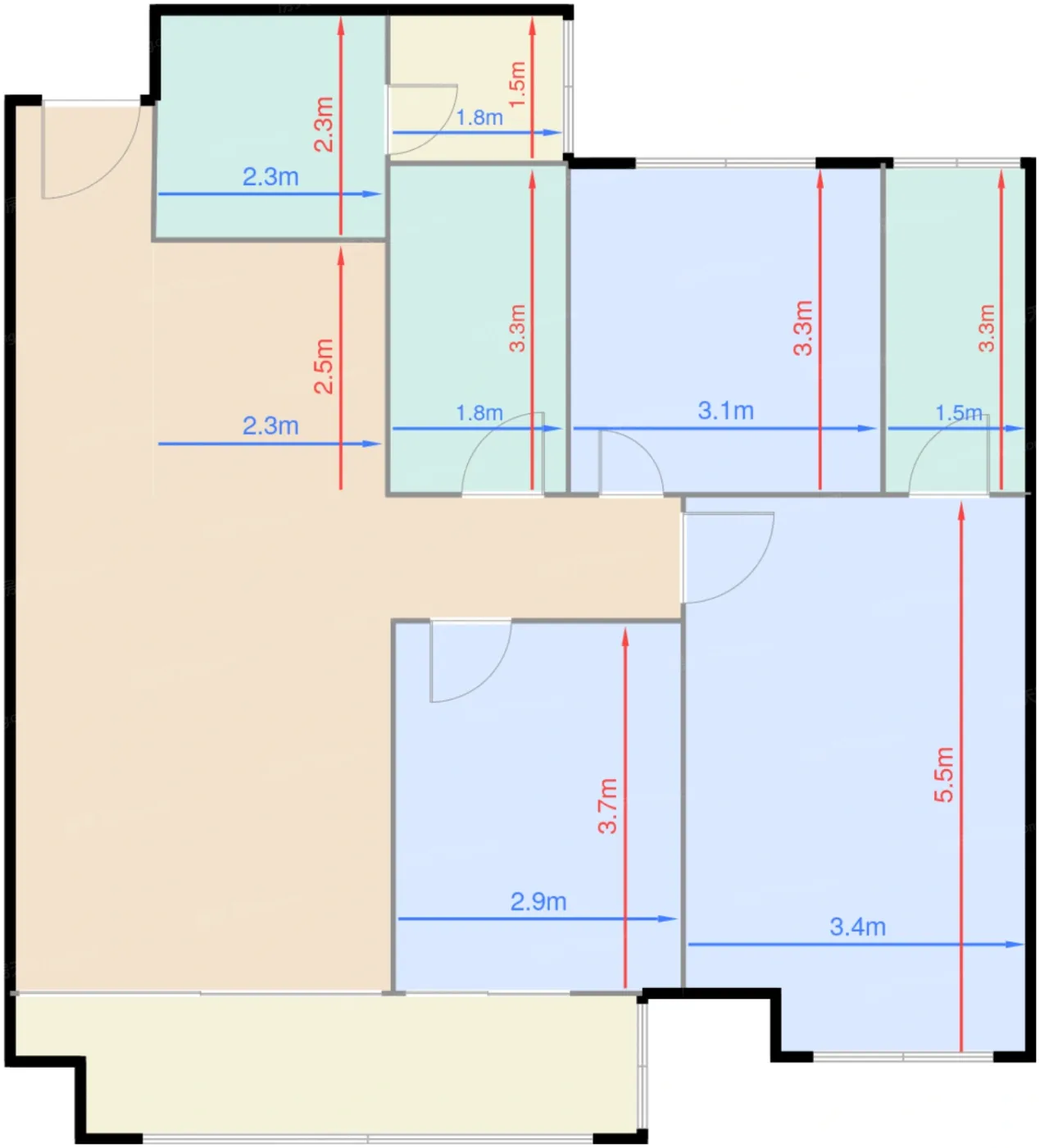 | 卧室C | 10.5 | 2.9 | 3.7 | 良好 |