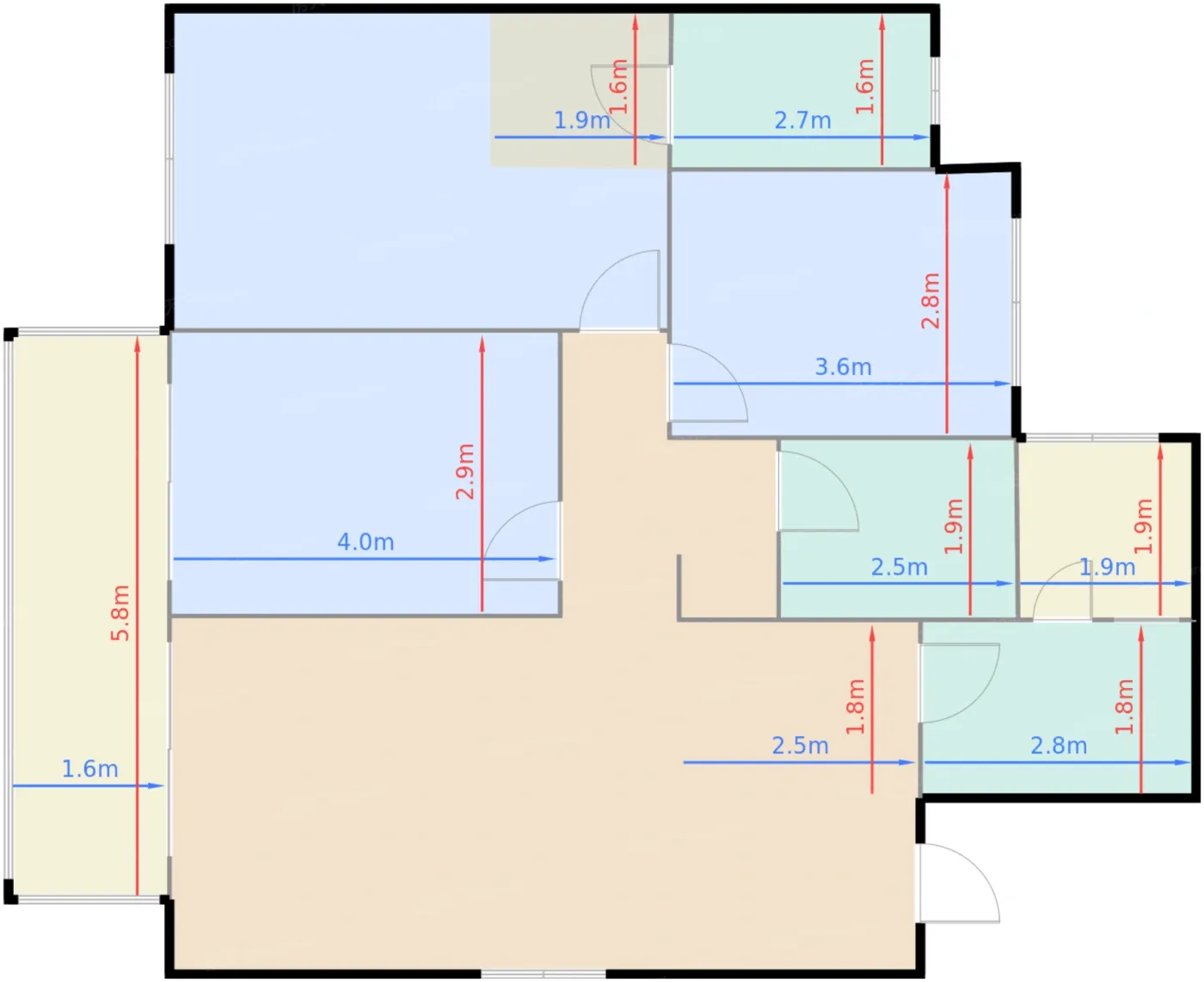 | 卧室 | 9.8 | 3.6 | 2.8 | 良好 |