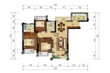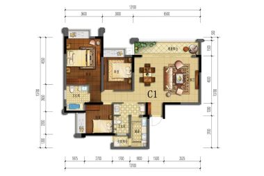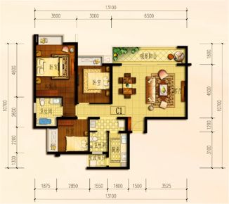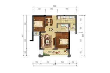室内空间对应面积。