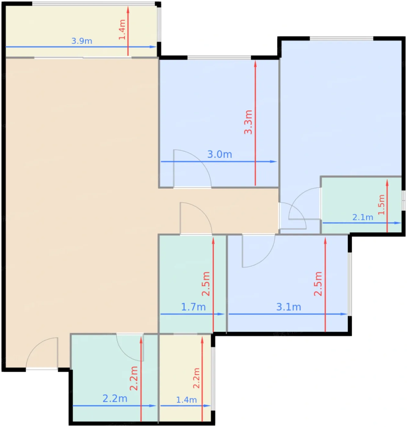 | 卧室C | 7.7 | 3.1 | 2.5 | 良好 |