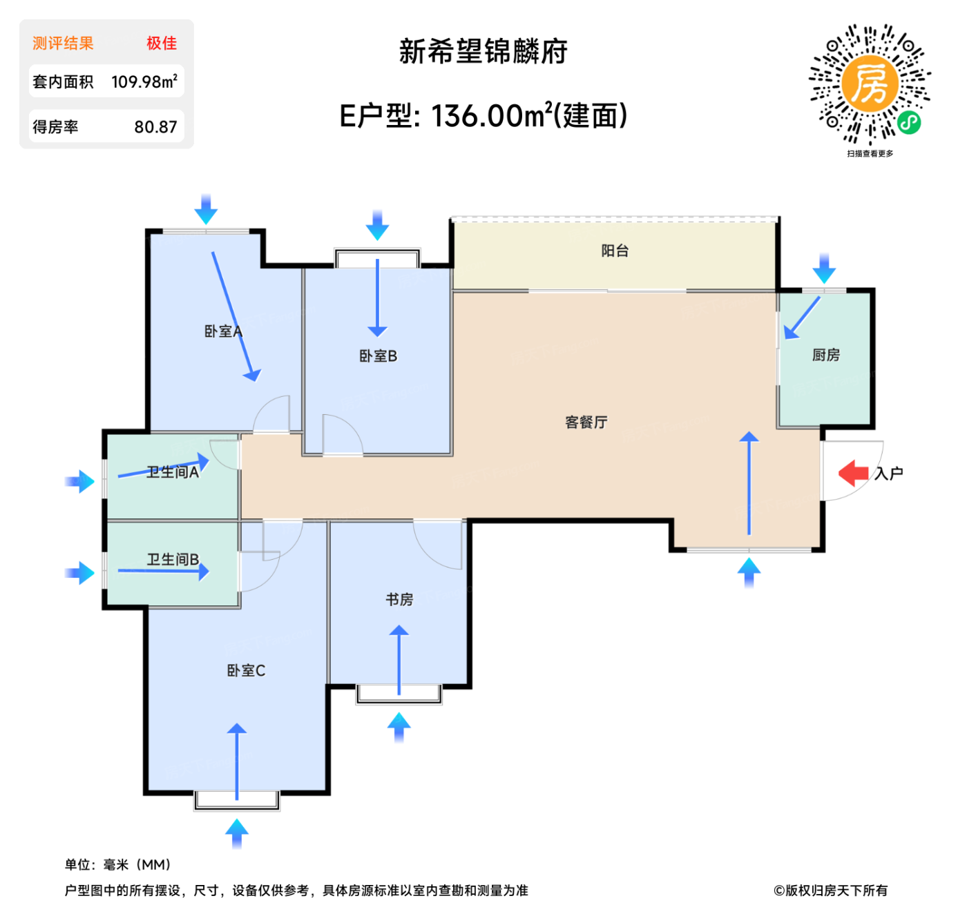 售完E户型 | 建面:136㎡ | 朝向: