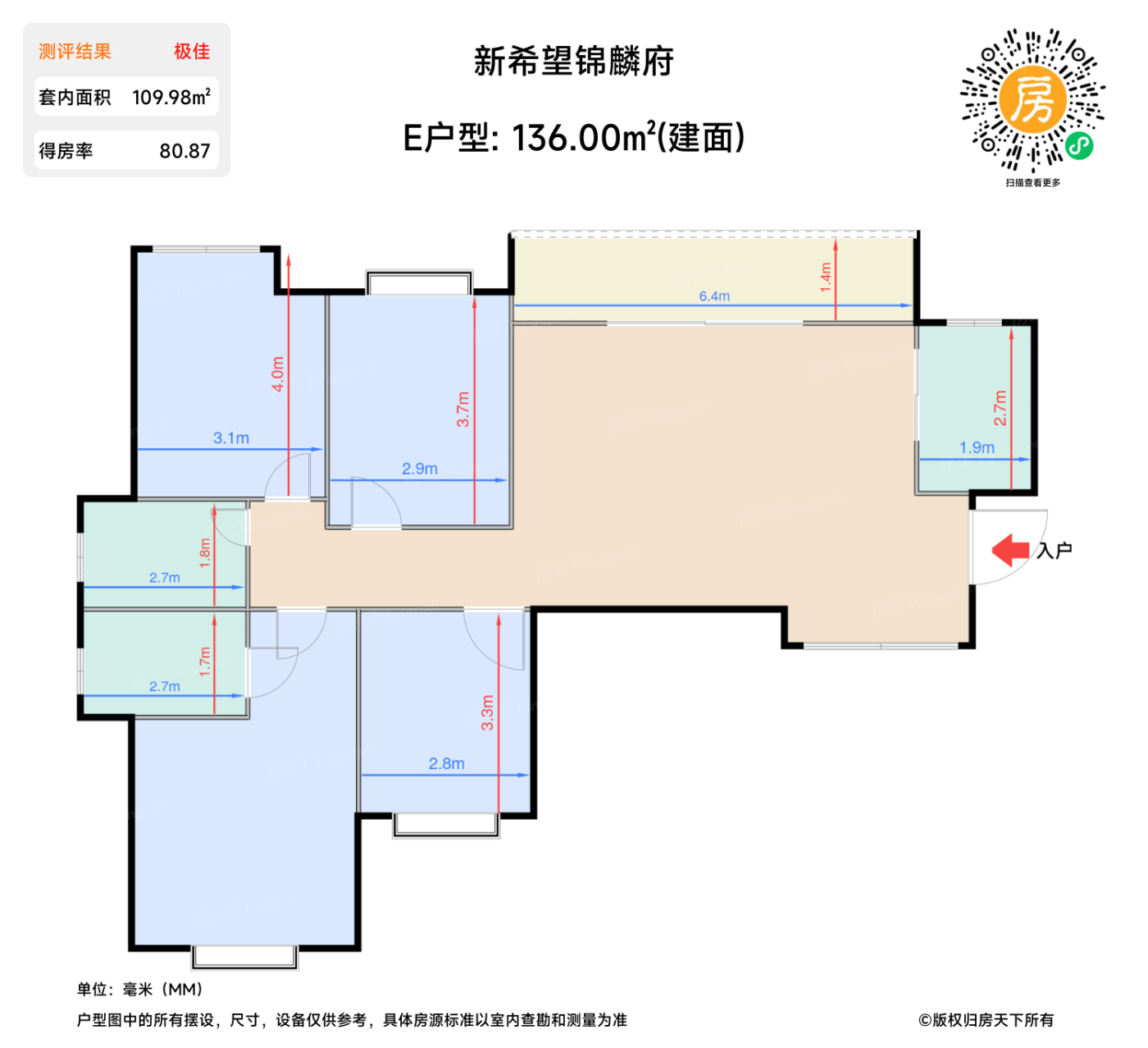 | 客餐厅 | 38.7 | 11.5 | 5.1 | 极佳 |