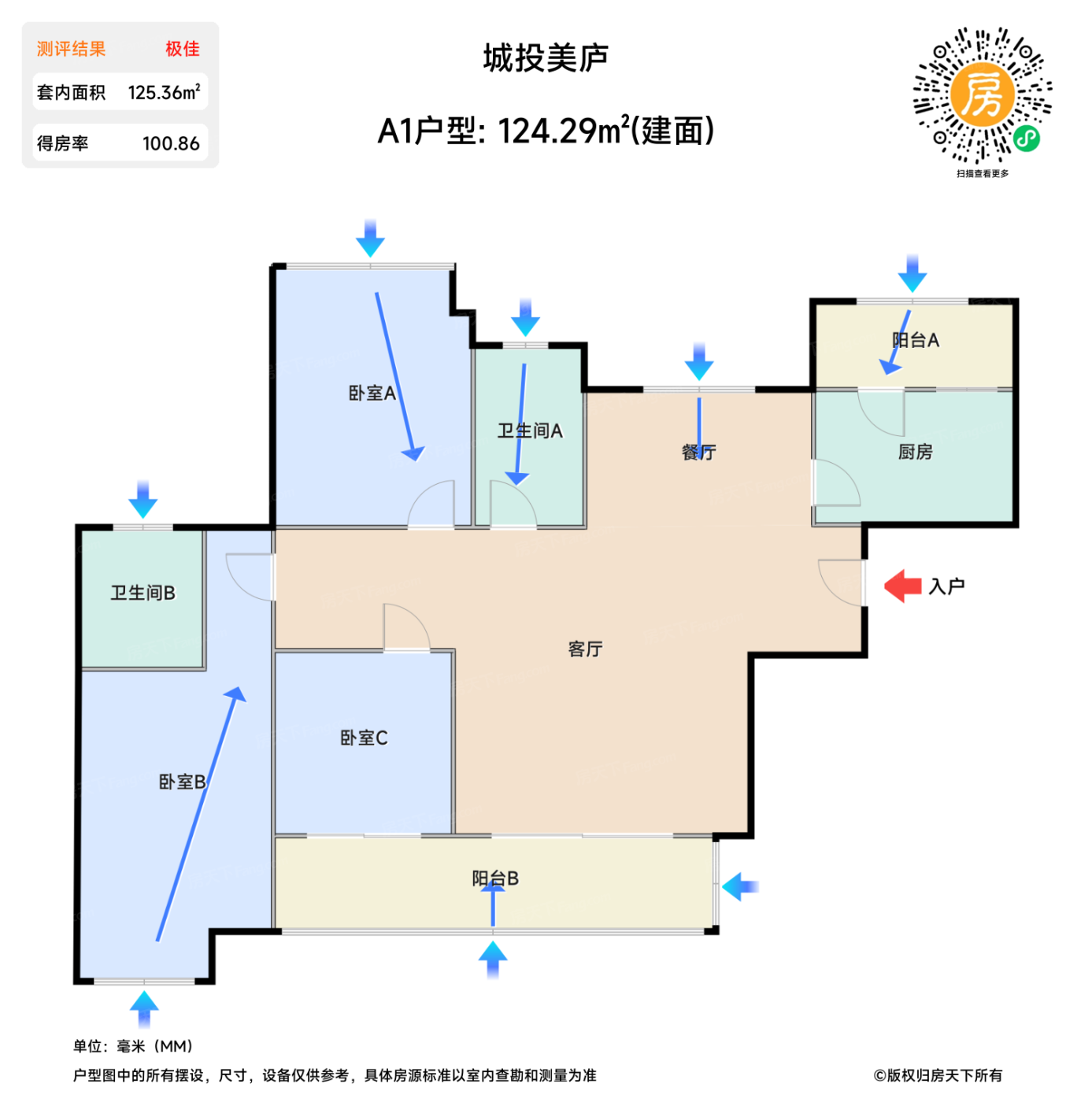 待售A1户型 | 建面:124.29㎡ | 朝向: