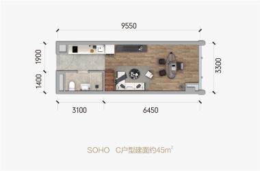 待售SOHO C1户型 | 建面:41㎡ | 朝向: