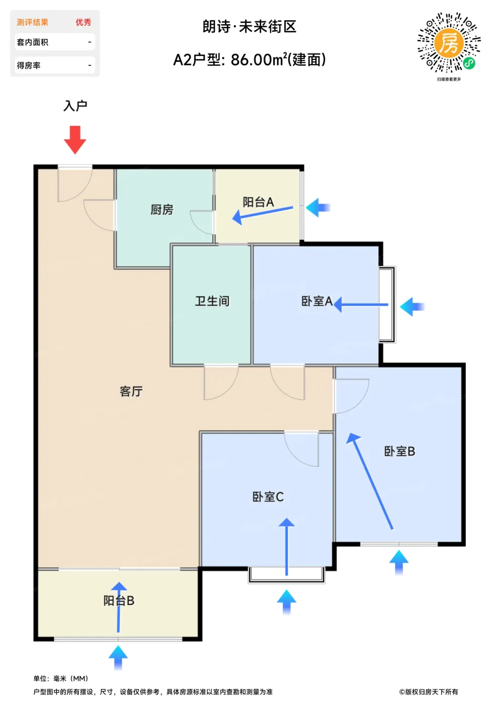 售完A2户型 | 建面:86㎡ | 朝向:南北