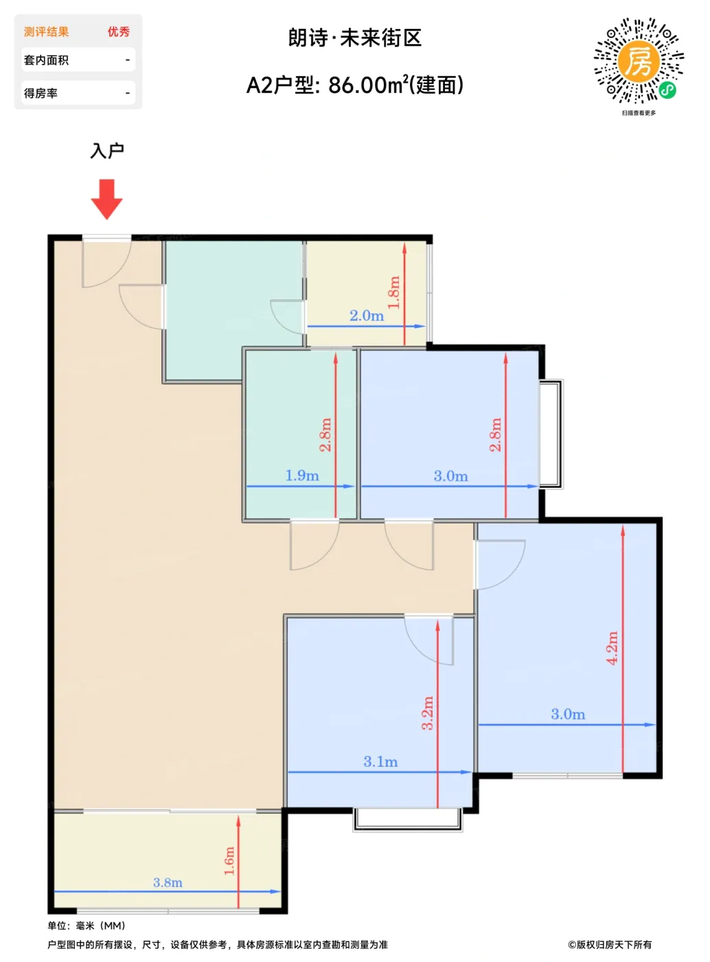 | 卧室A | 8.4 | 3 | 2.8 | 良好 |