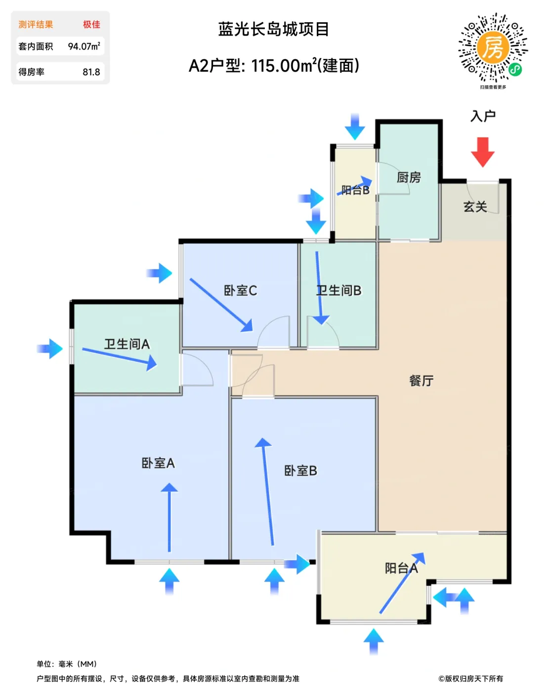 售完A2户型 | 建面:115㎡ | 朝向: