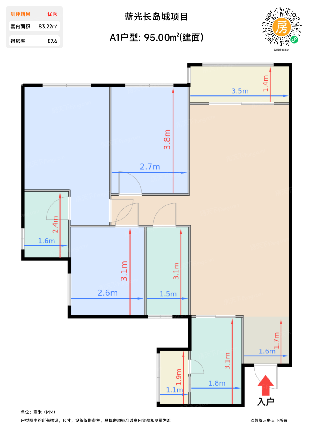 | 卧室C | 8.2 | 2.6 | 3.1 | 良好 |
