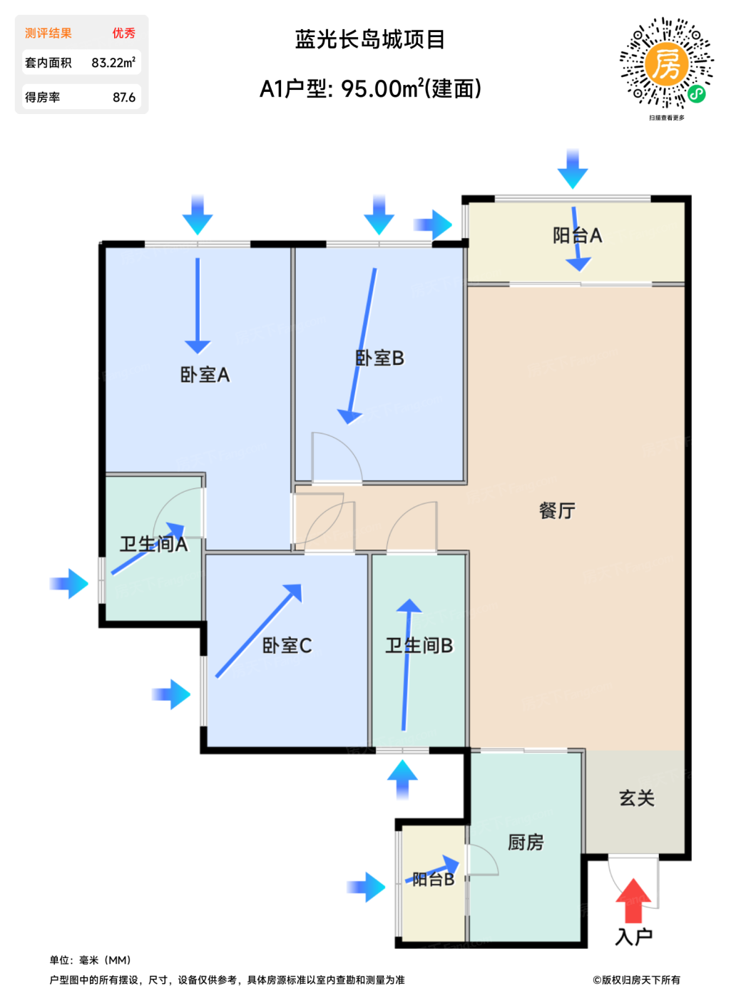 售完A1户型 | 建面:95㎡ | 朝向: