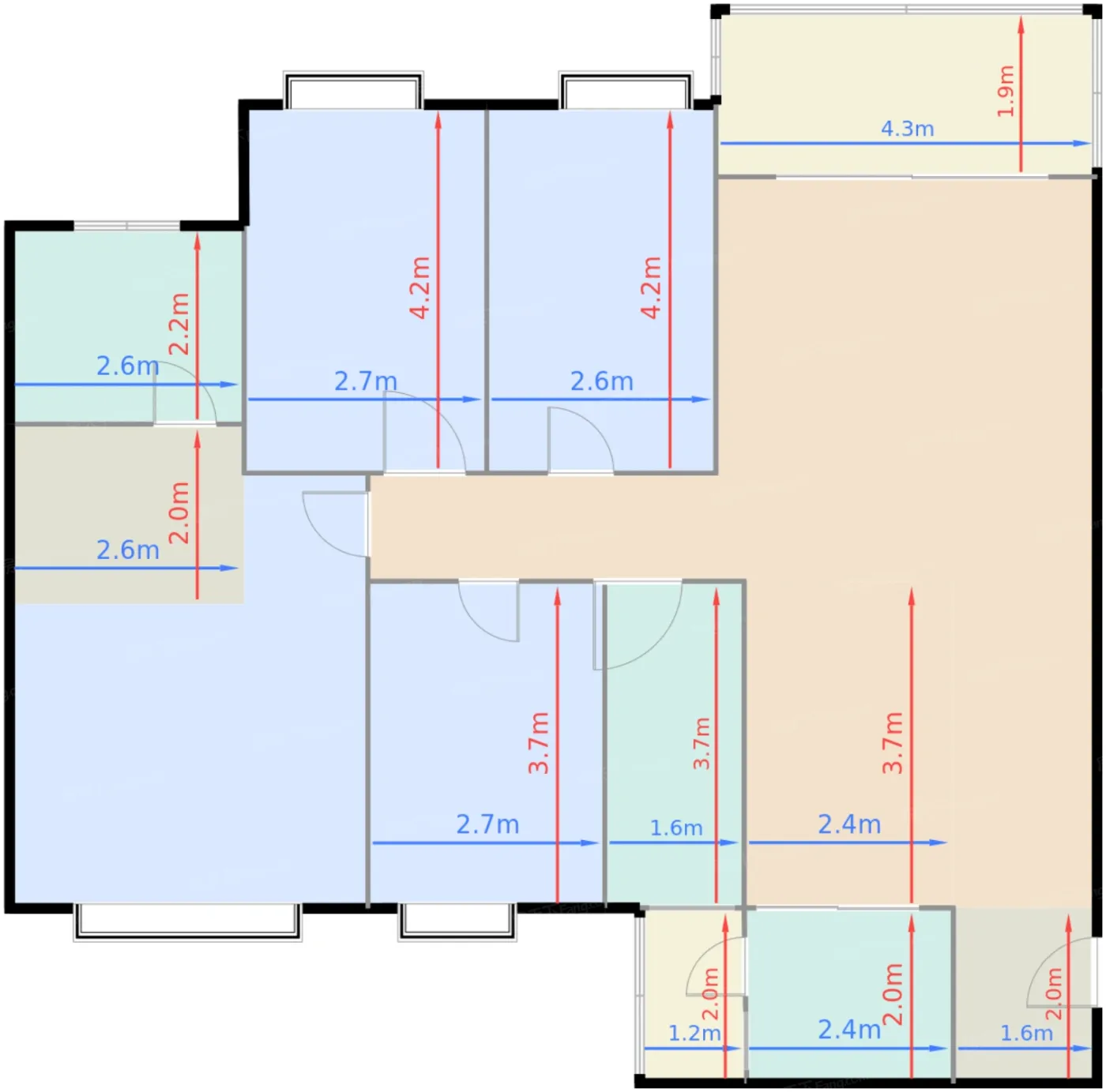 | 卧室C | 10.7 | 2.6 | 4.2 | 良好 |