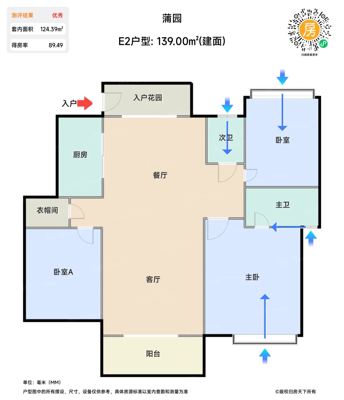待售E2户型 | 建面:139㎡ | 朝向: