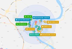 直线3km范围内有21个幼儿园。直线3km范围内有4个小学:简阳市射洪坝第一小学、简阳市射洪坝筒车小学、简阳市射洪坝水东小学、石桥街道中心小学。直线3km范围内有5个中学:简阳市射洪坝第一初级中学、石桥中学-育英文武学校、石桥中学、简阳市石桥初中、简阳通材实验学校。