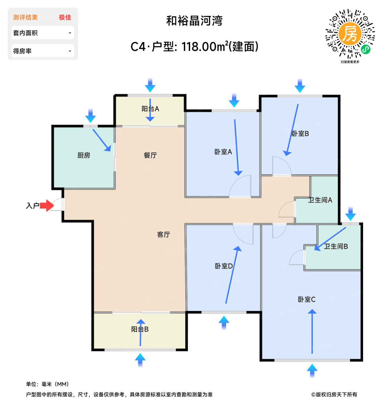 待售C4户型 | 建面:118㎡ | 朝向:南北