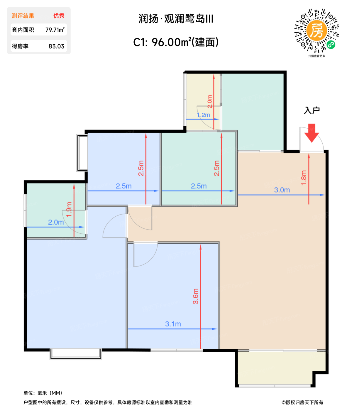 | 卧室B | 11.1 | 3.1 | 3.6 | 良好 |