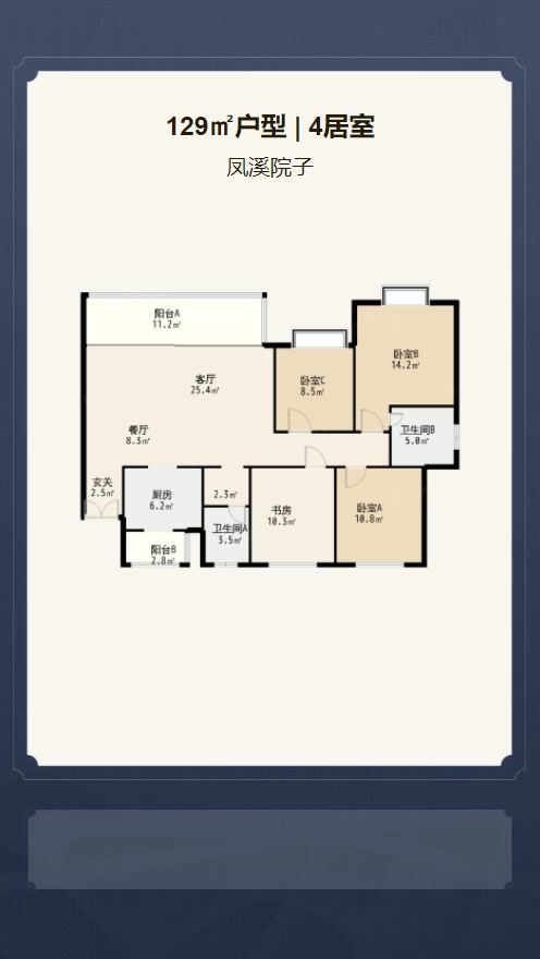 待售A1户型 | 建面:129㎡ | 朝向:南北