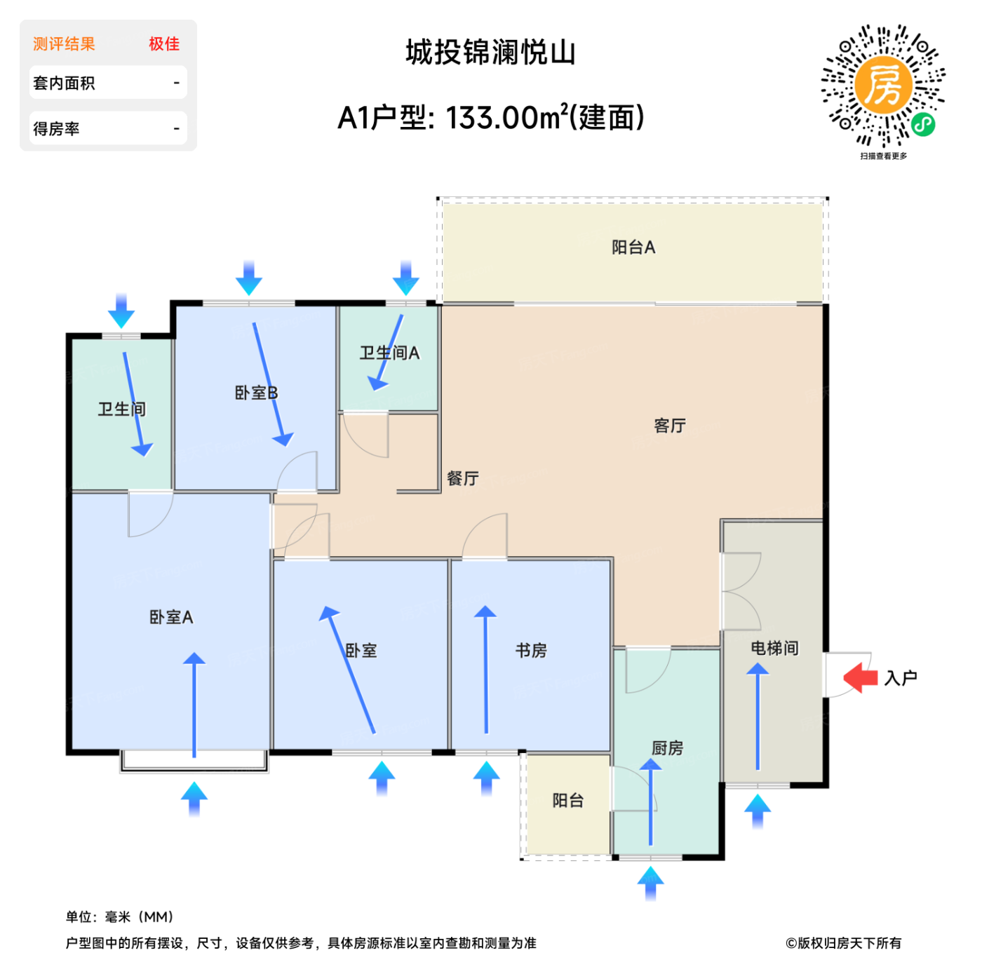 | 卧室A | 16.4 | 3.6 | 4.6 | 极佳 |