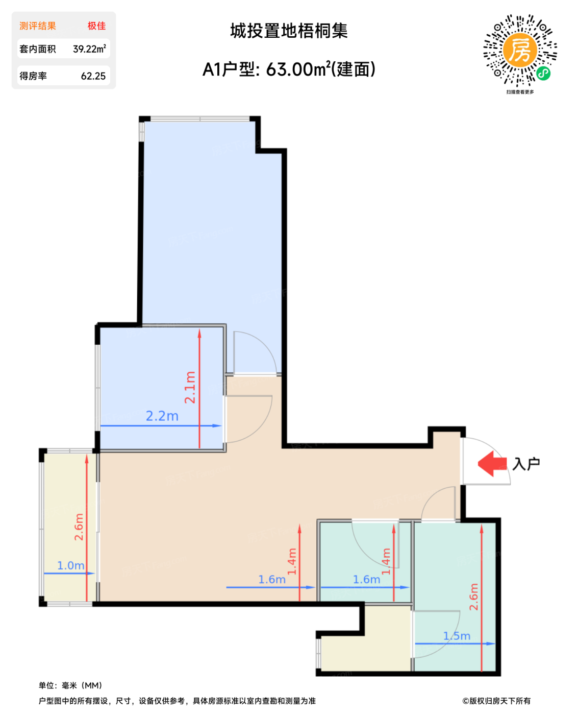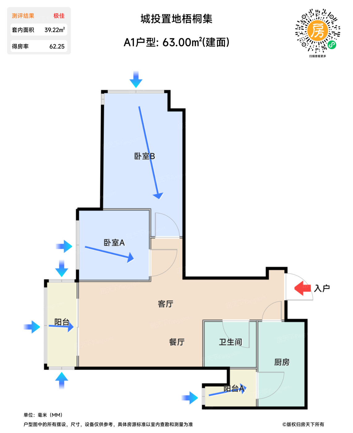 售完A1户型 | 建面:63㎡ | 朝向: