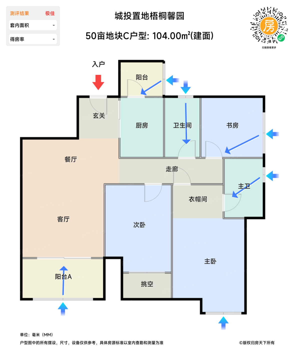在售50亩地块C户型 | 建面:104㎡ | 朝向: