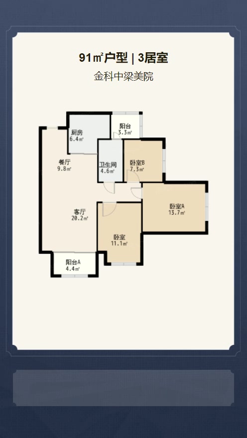 在售揽境高层A户型 | 建面:91㎡ | 朝向:南北