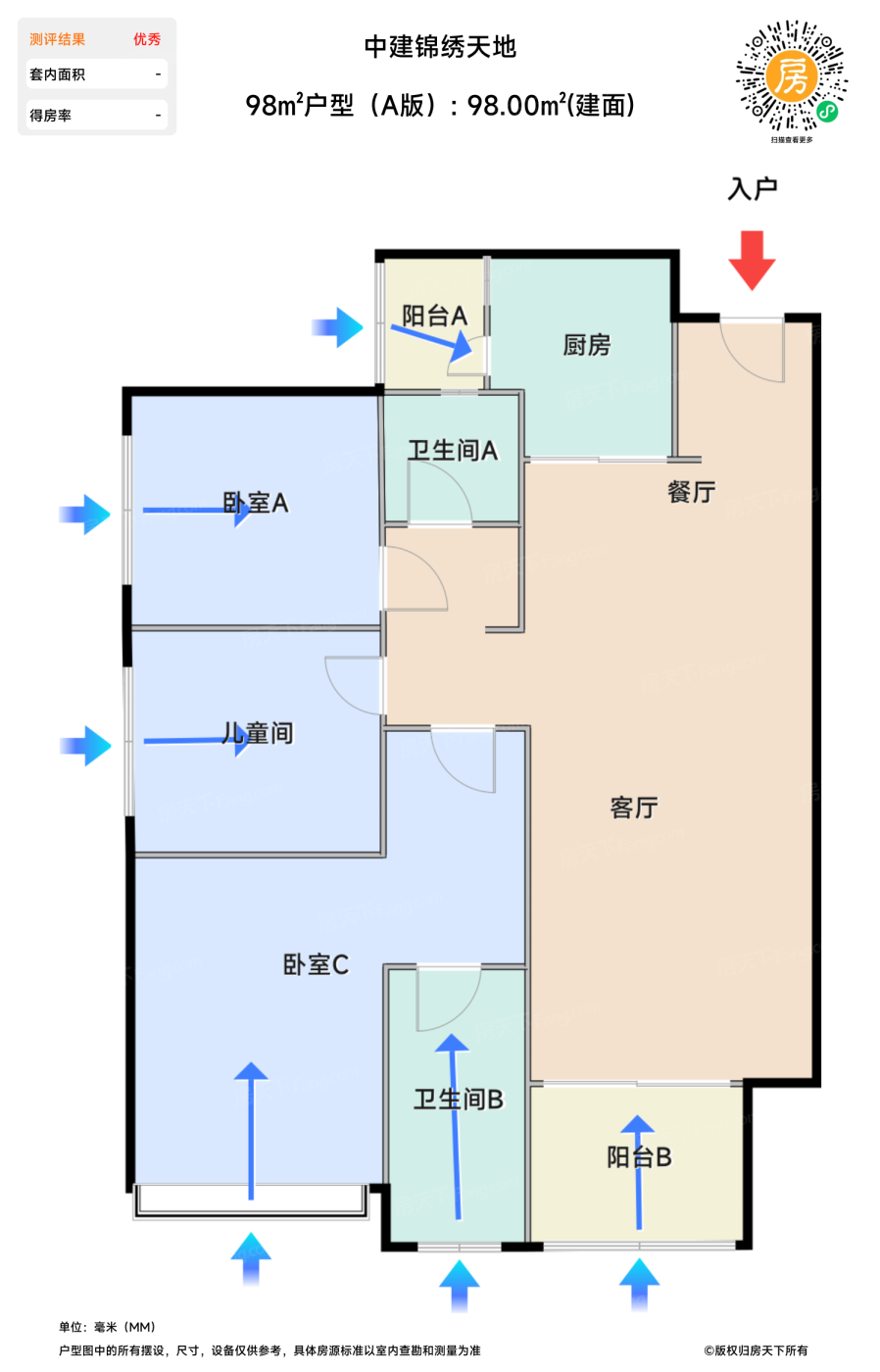 售完98㎡户型(A版) | 建面:98㎡ | 朝向: