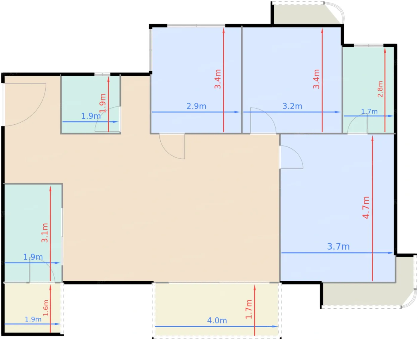 | 卧室B | 17.3 | 3.7 | 4.7 | 极佳 |