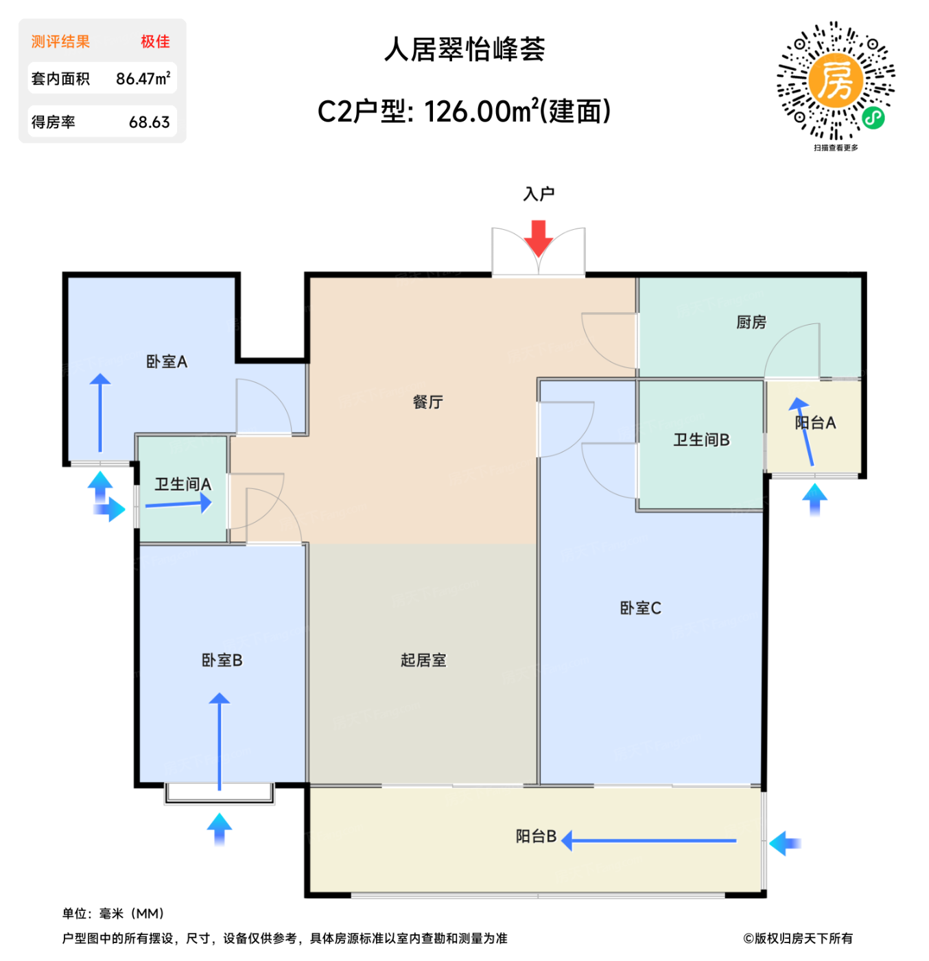 在售C2户型 | 建面:126㎡ | 朝向:南北