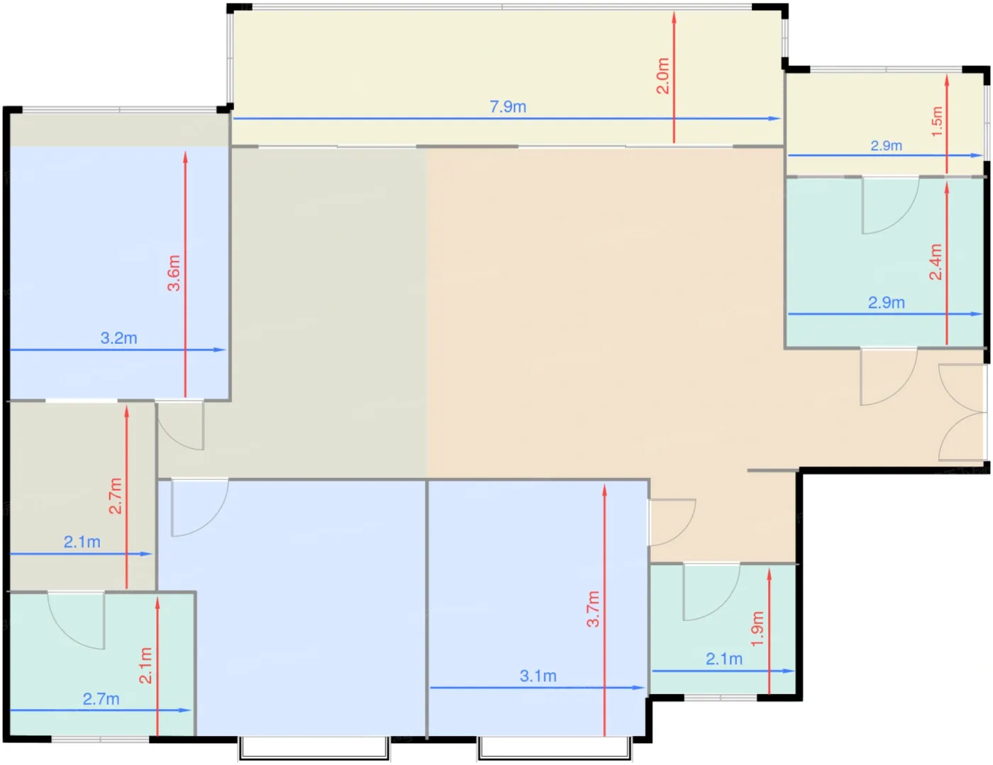| 卧室B | 11.6 | 3.1 | 3.7 | 良好 |