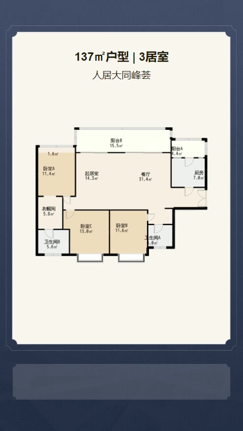 在售B1'户型 | 建面:137㎡ | 朝向: