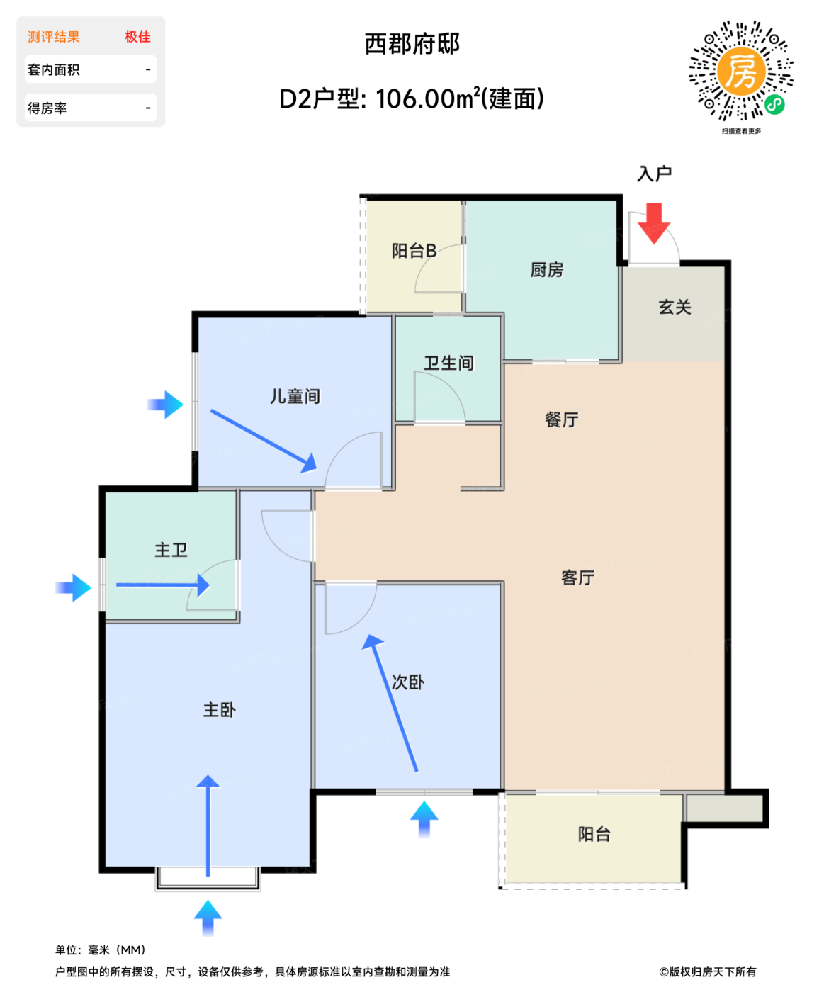 在售D2户型 | 建面:106㎡ | 朝向: