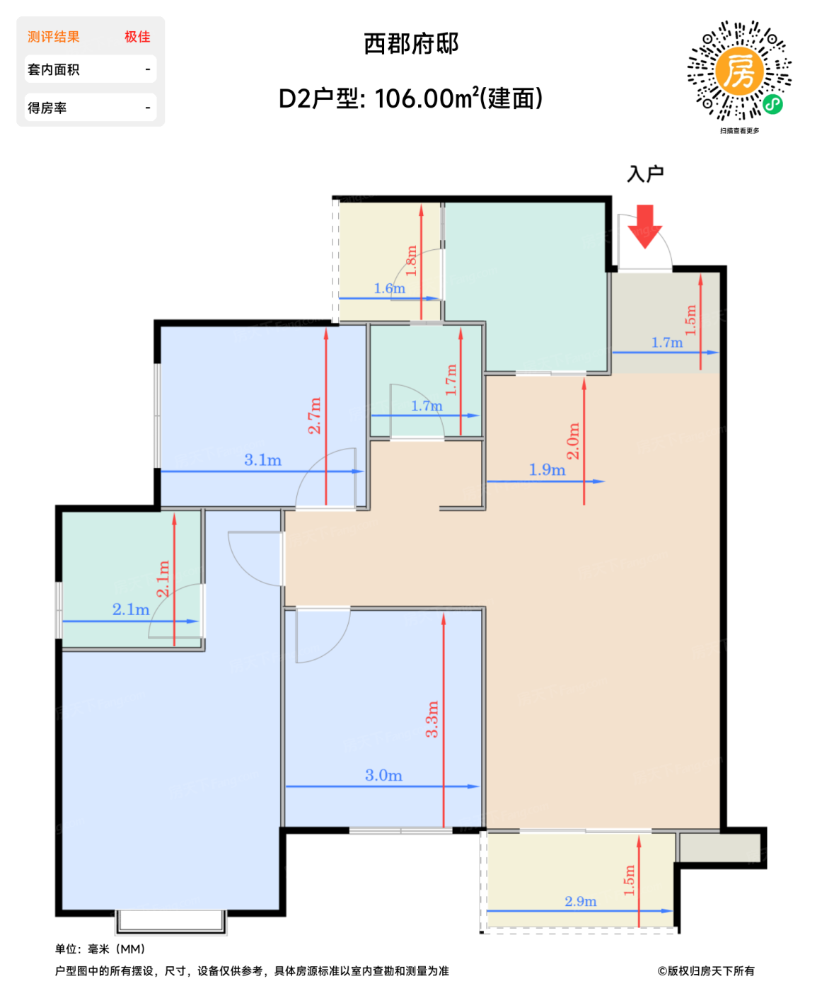 | 次卧 | 9.7 | 3 | 3.3 | 良好 |
