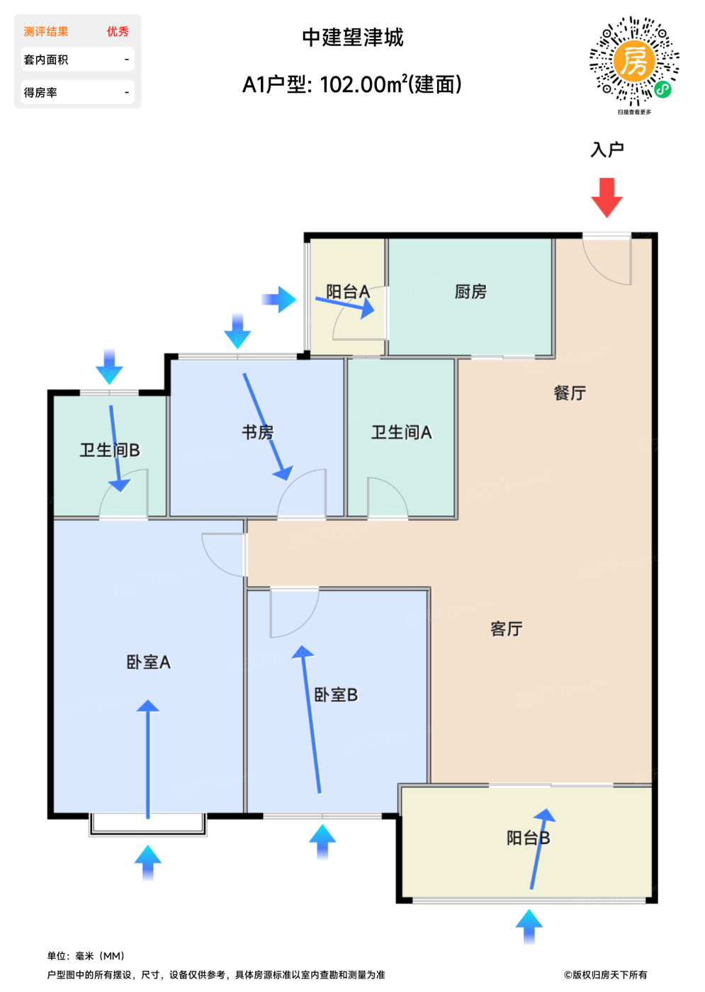 在售A1户型 | 建面:102㎡ | 朝向:西南
