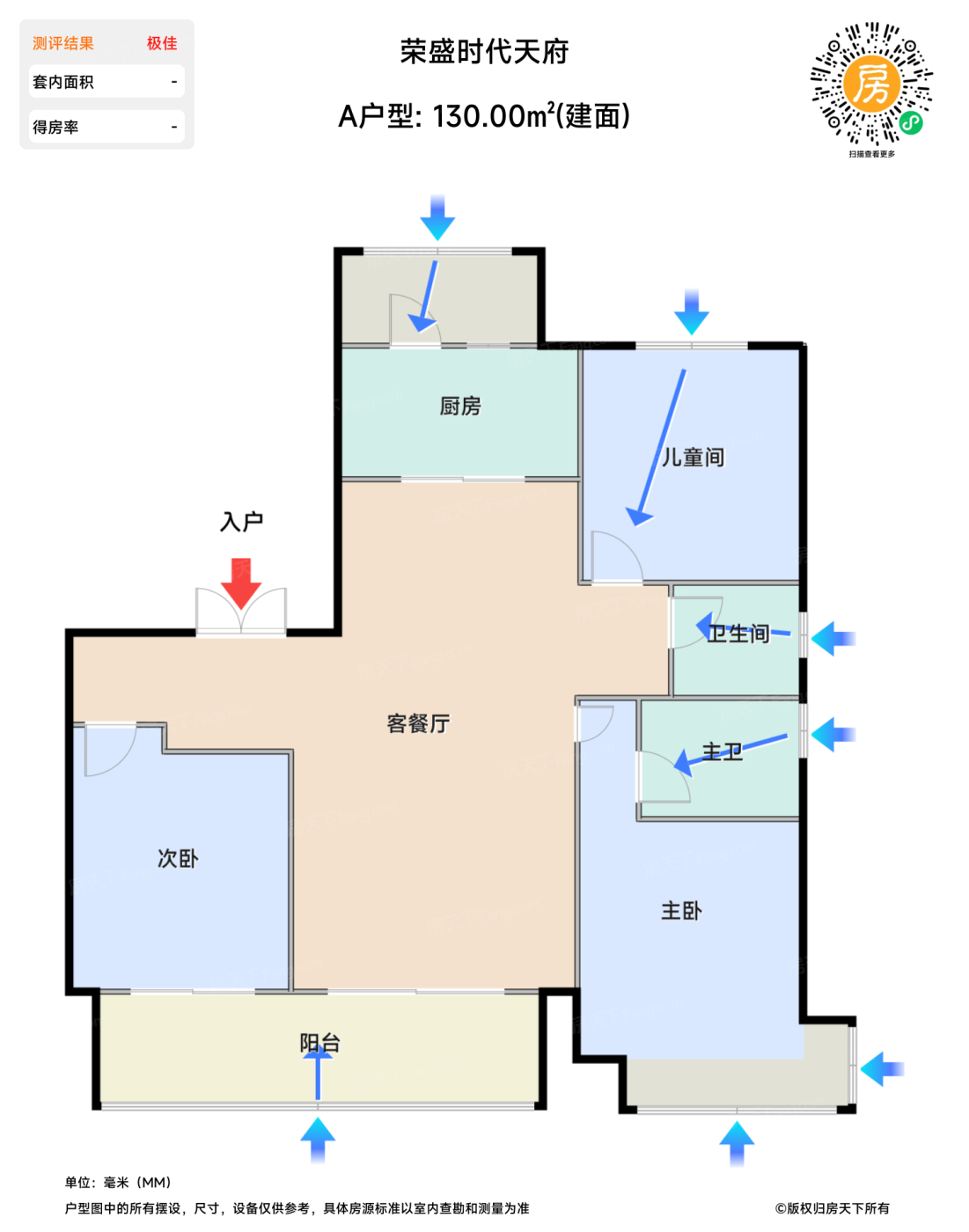 在售A户型 | 建面:130㎡ | 朝向:南北