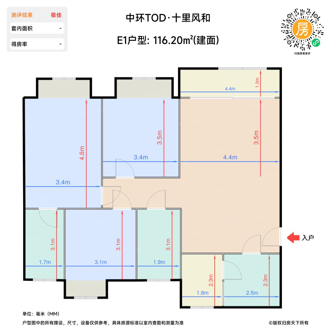 | 卧室B | 16.2 | 3.4 | 4.8 | 极佳 |
