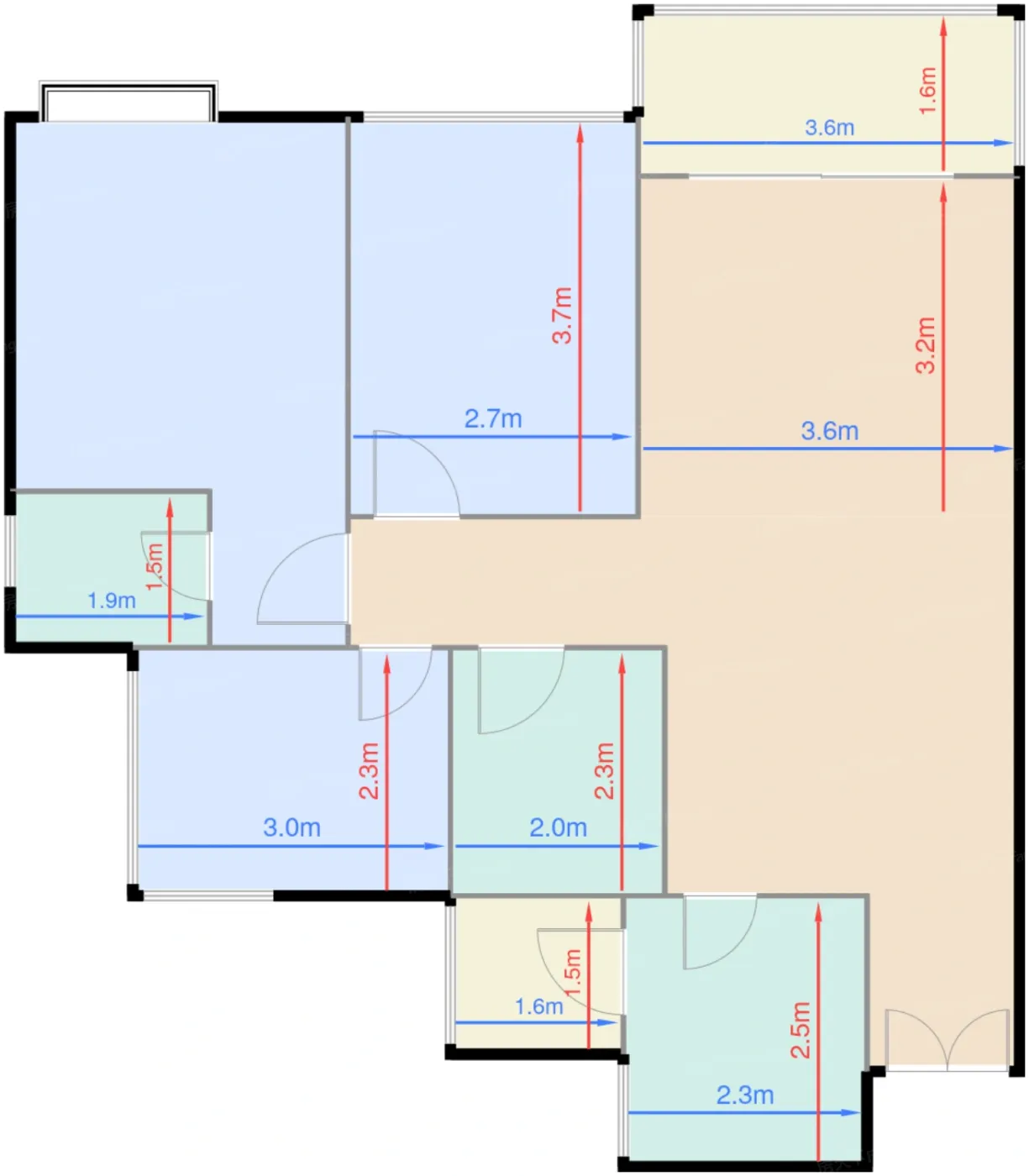 | 阳台B | 5.5 | 3.6 | 1.6 | 良好 |