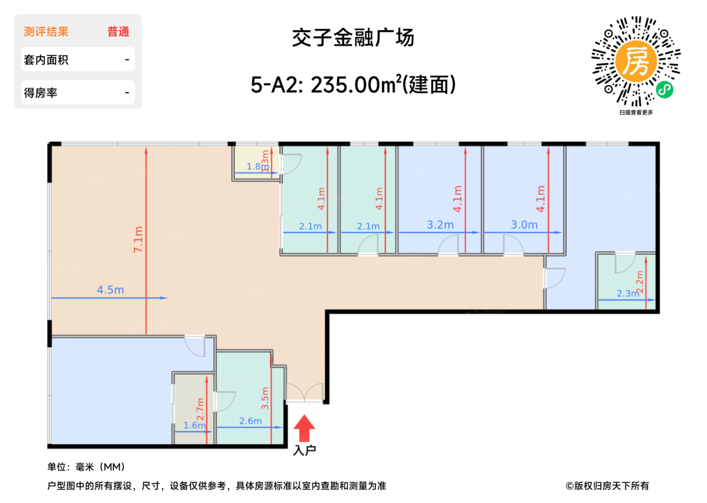 | 面积(㎡) | 面宽(m) | 进深(m) | 评价 | |
