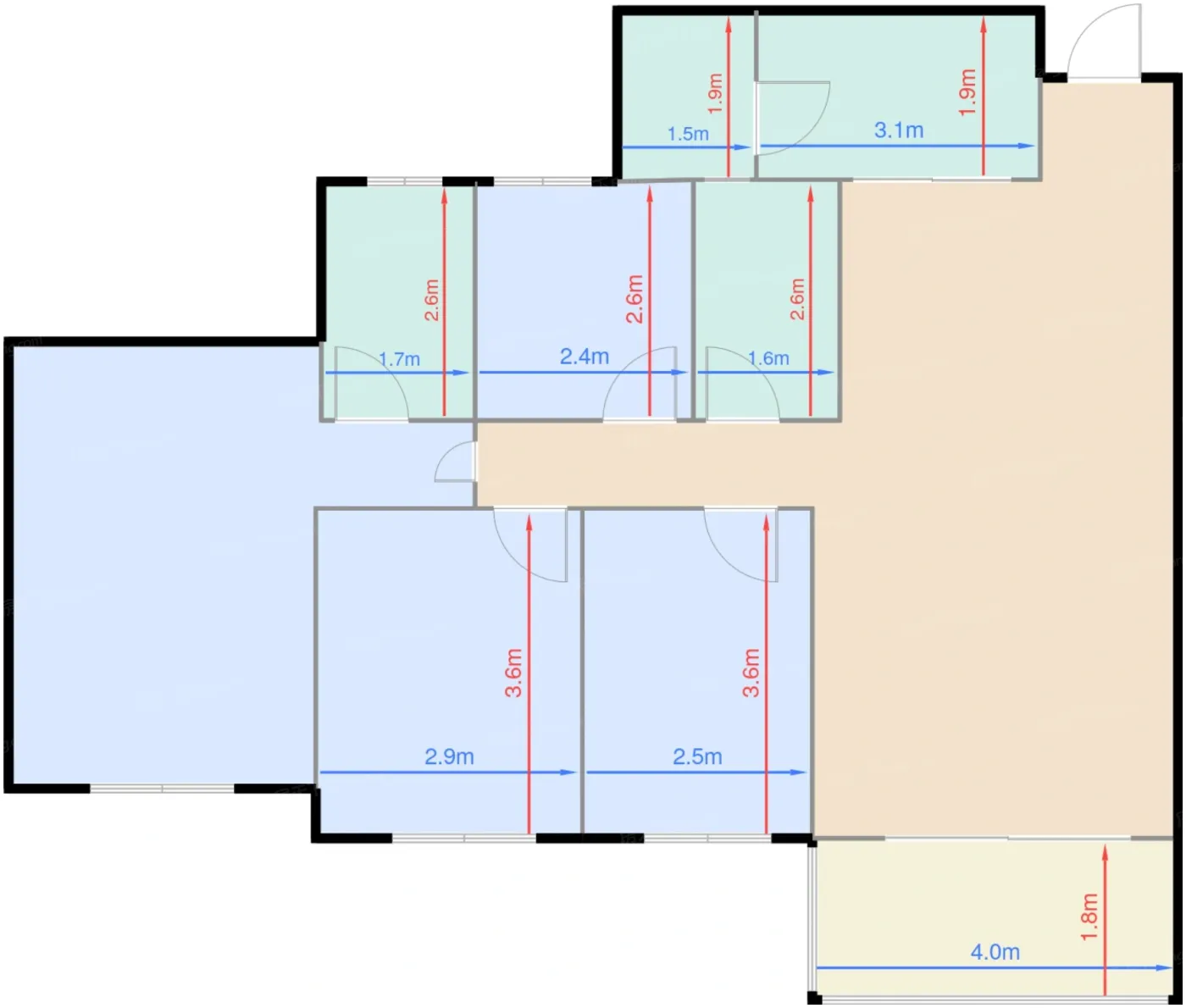 | 卧室B | 10.5 | 2.9 | 3.6 | 良好 |