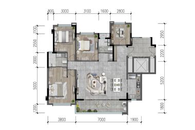 室内空间对应面积。