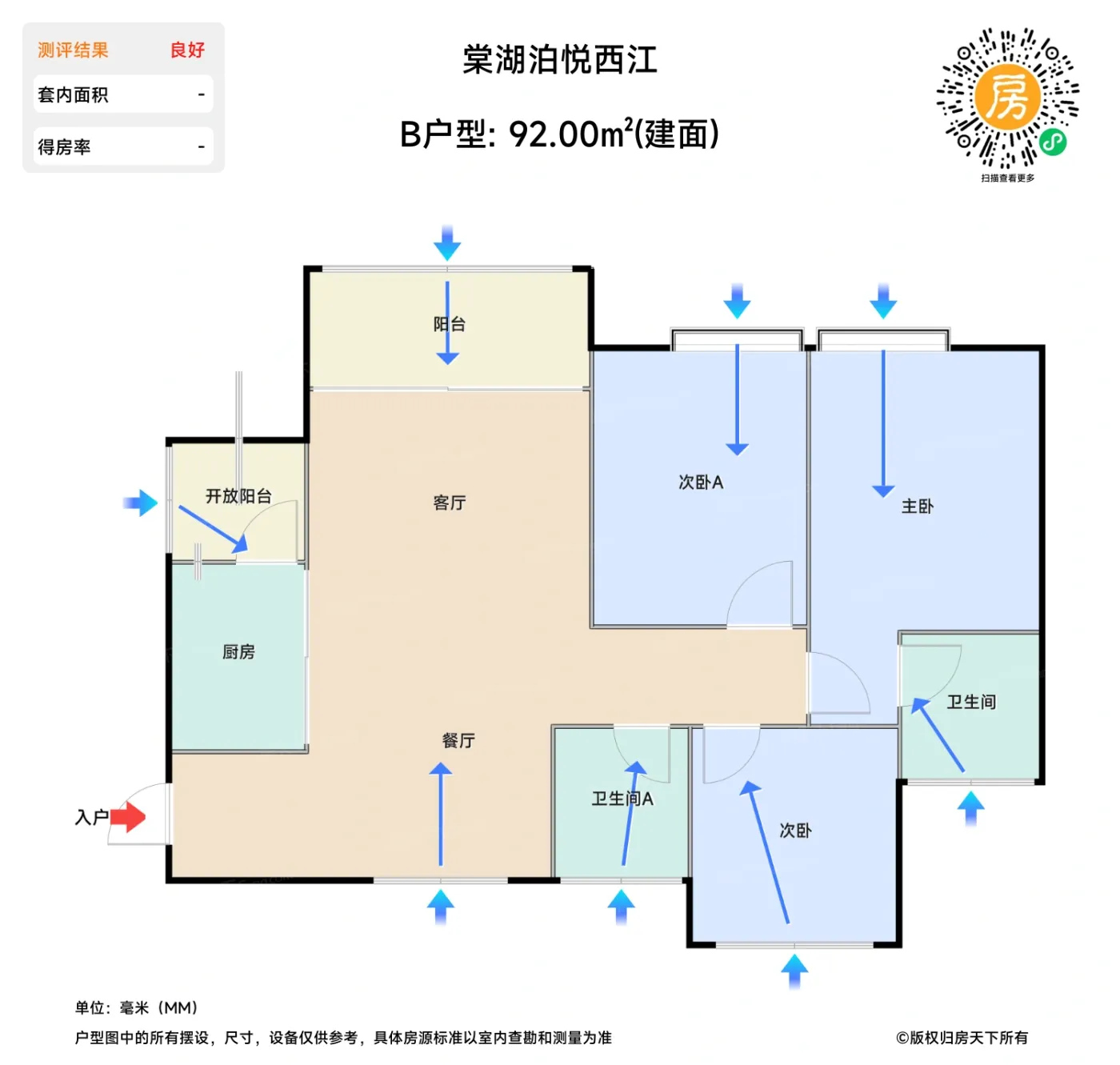 在售B户型 | 建面:92㎡ | 朝向:西南