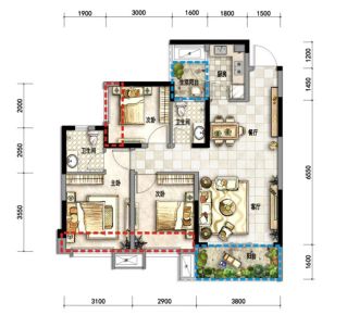 - 有阳台客厅设有阳台,这一小片天地,既可供休息,又可作为活动的延伸空间。