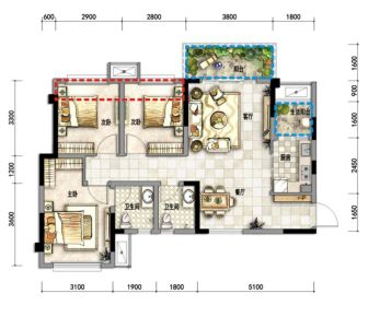 - 有飘窗主卧拥有精致飘窗,给您打造私密而舒适的角落,让您在此欣赏窗外美景,享受悠然时光。