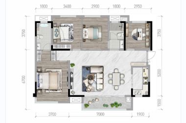 - 有阳台客餐厅外连阳台,让视野更加开阔,也为家中增添了一处赏景的好地方。