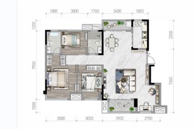 客餐厅 35.8㎡ | 面宽9.9m | 进深5.3m