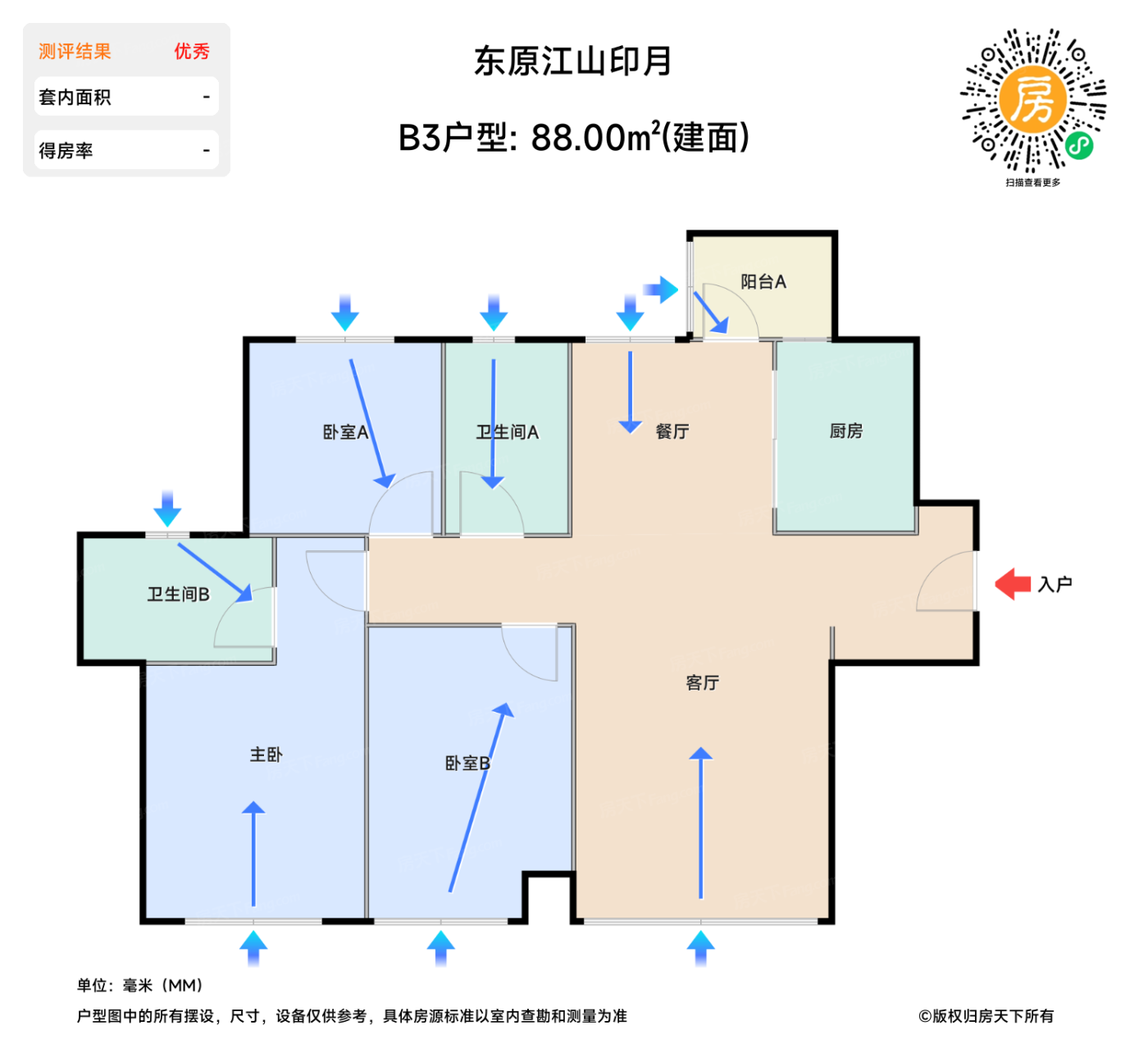 待售B3户型 | 建面:88㎡ | 朝向:南,北,东,西